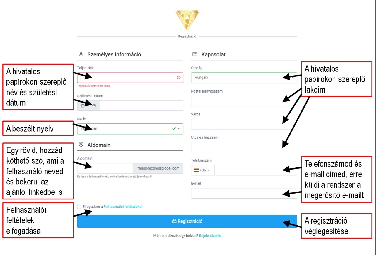 A regisztrációhoz szükséged van egy ajánlói oldal linkre IDE kattintva teheted meg.